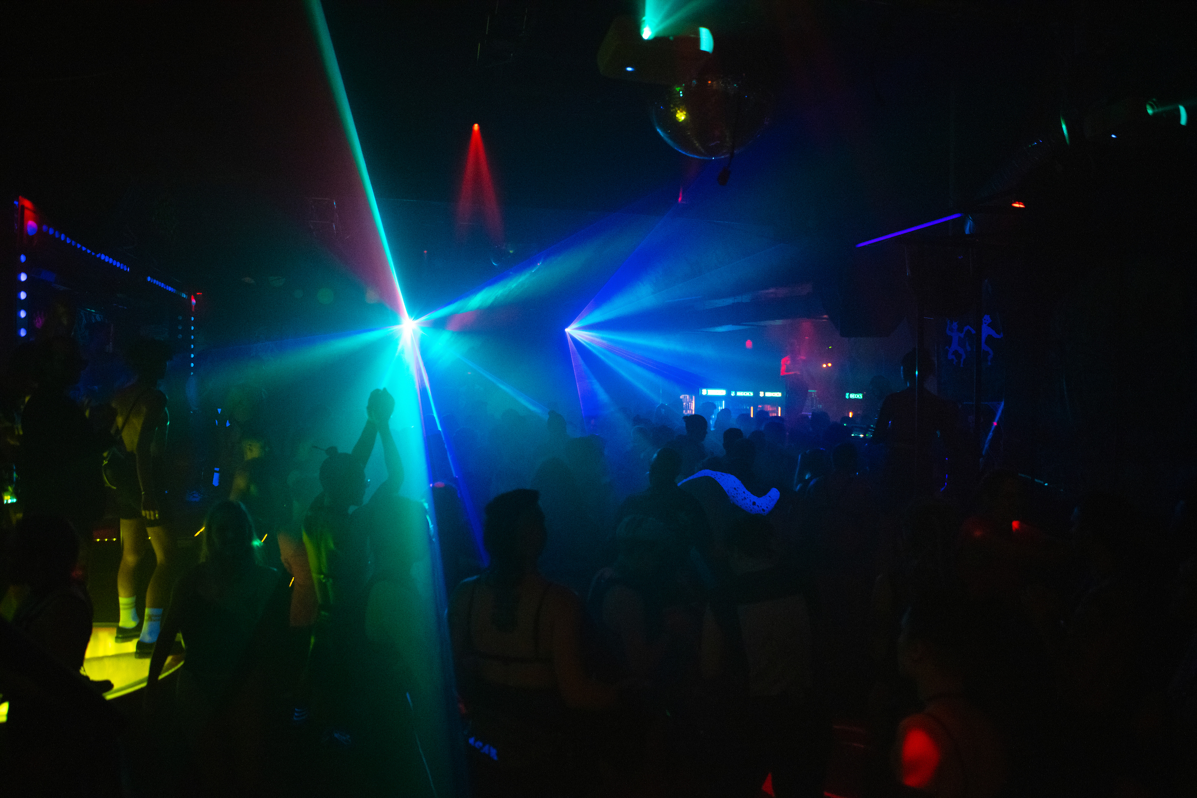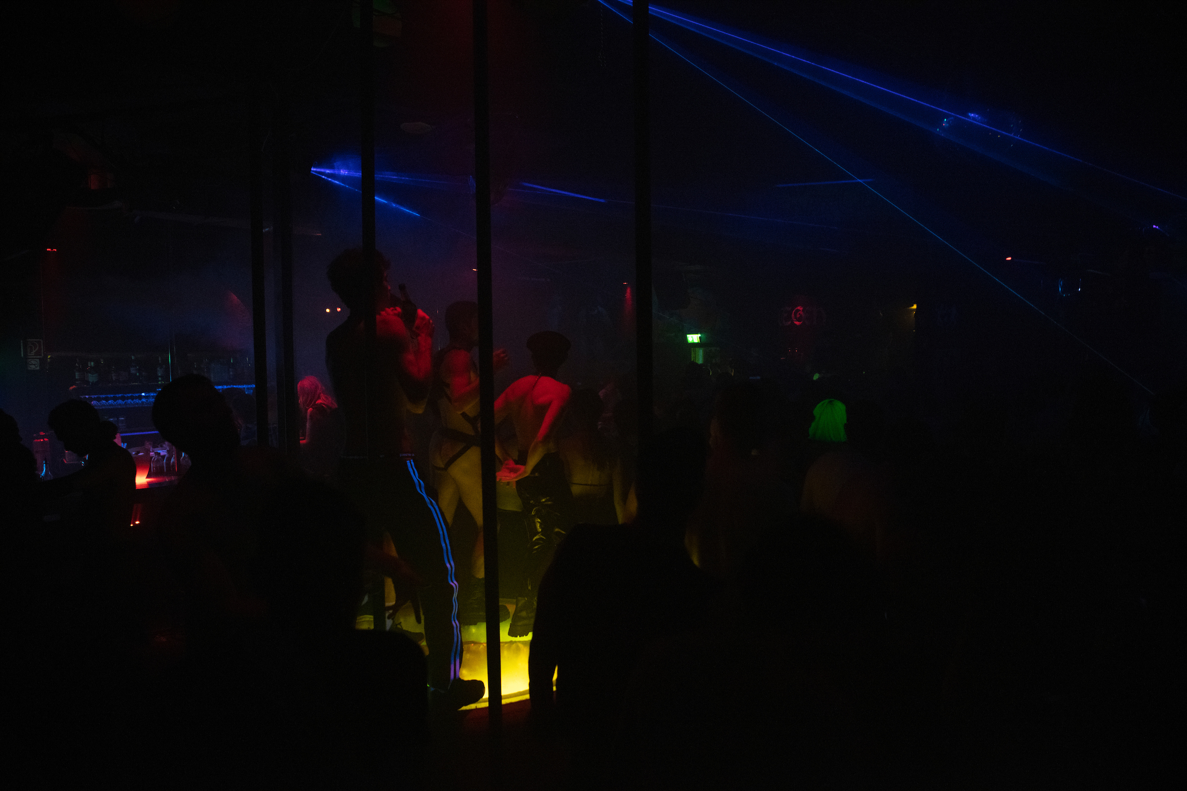 Come dance together, as limp-wristed dykes or hard-bodied twinks, in the lysergic shadows of the fog machine.